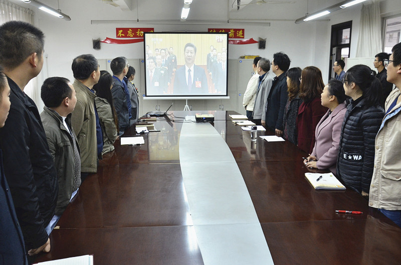 上午9時(shí)整,云天化中學(xué)教育公司黨委組織收看十九大開(kāi)幕實(shí)況。教育公司總經(jīng)理黃林,黨委副書記、紀(jì)委書記林勇,副總經(jīng)理孟雄及相關(guān)部門負(fù)責(zé)人、各基層黨支部負(fù)責(zé)人、部分教師代表共同觀看開(kāi)幕會(huì)實(shí)況。