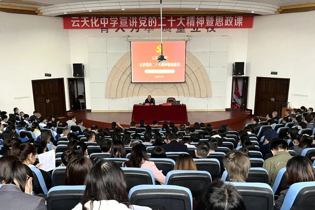市委常委、宣傳部部長毛利燕,市委常委、市委辦主任梁健,市委常委、市教體局局長楊瑞余,市政府副市長羅雪,市教體局班子成員、股室負責(zé)人,云天化中學(xué)黨委班子、各實體校級領(lǐng)導(dǎo)、全體教職員工和學(xué)生代表聆聽宣講。
