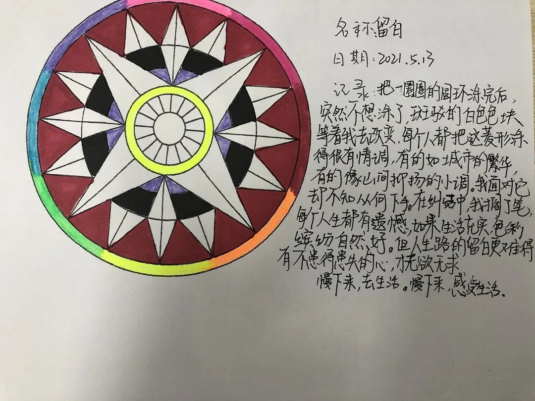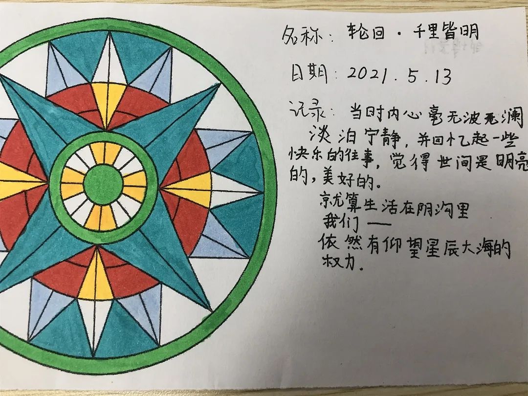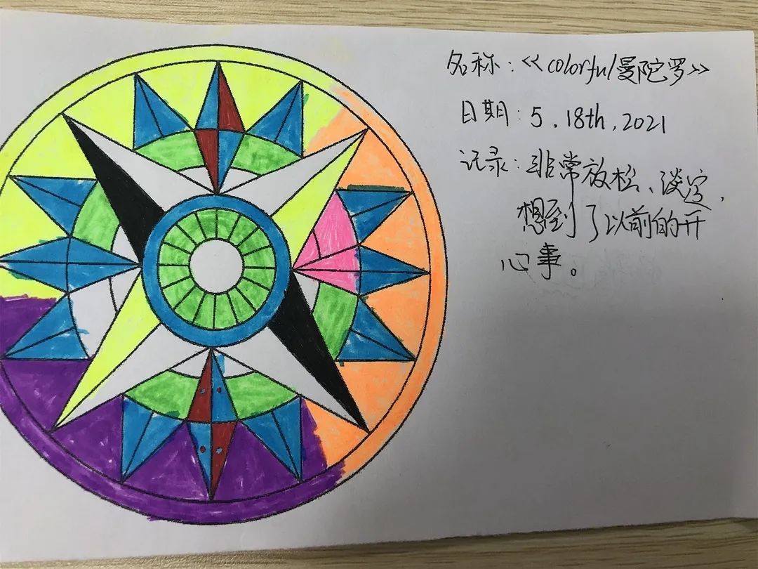 曼陀羅,是梵語的音譯,曼陀羅繪畫具有整合心靈,增強心理和諧與人格完整的功能。通過結構性的涂色,增強內心秩序感,從而減少彌散性焦慮的程度。