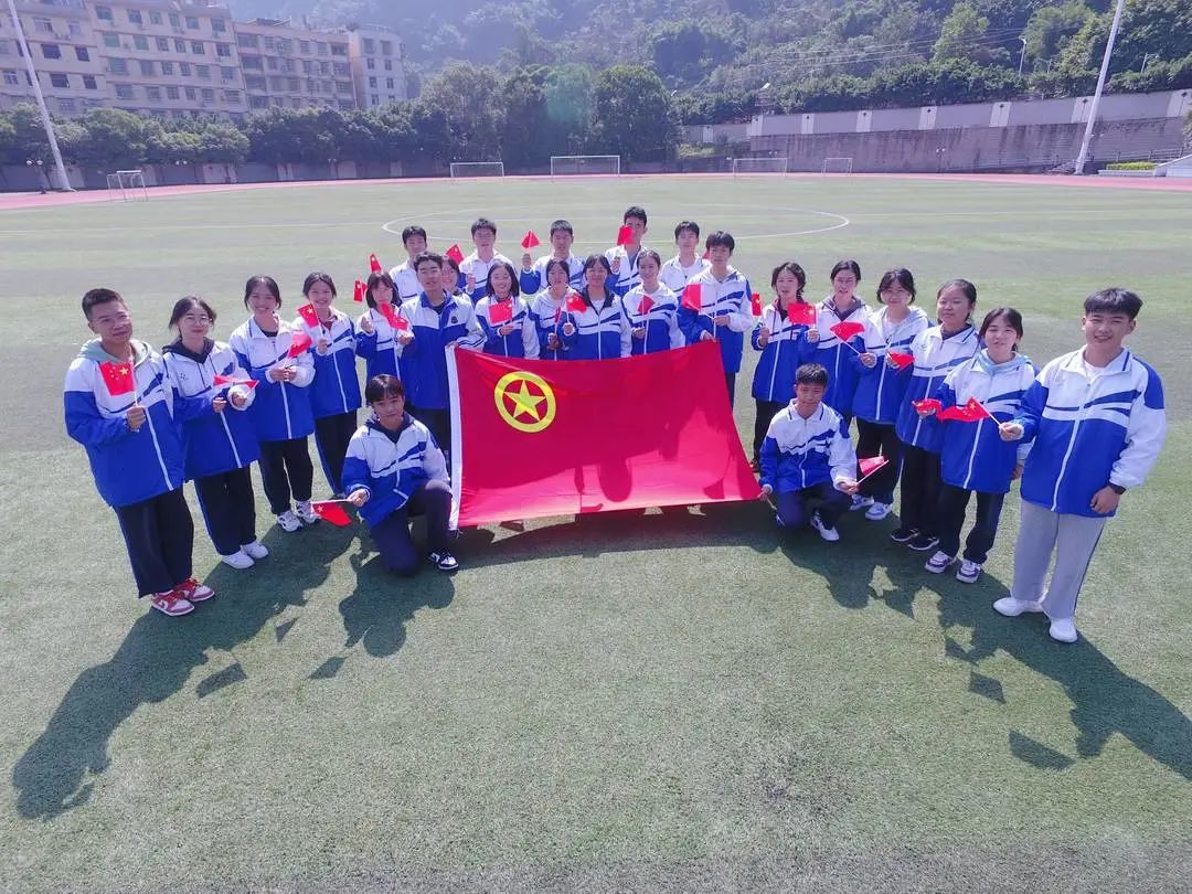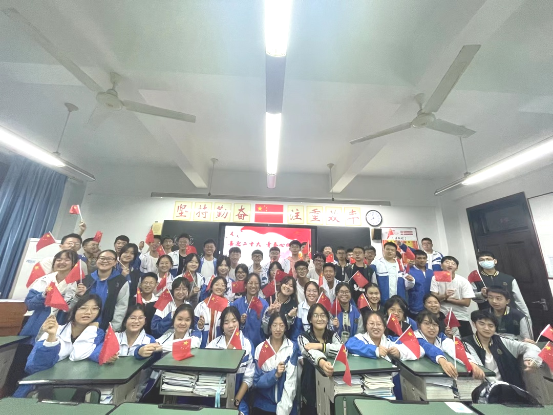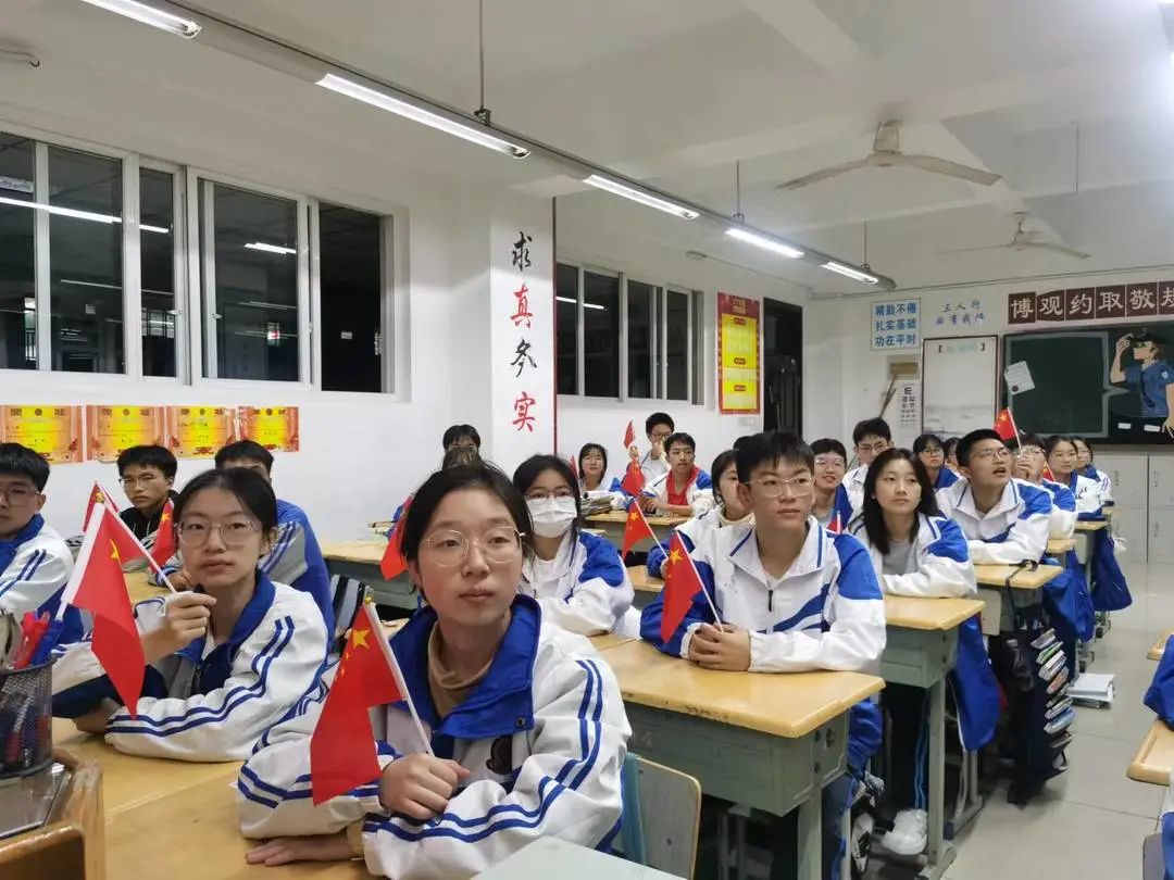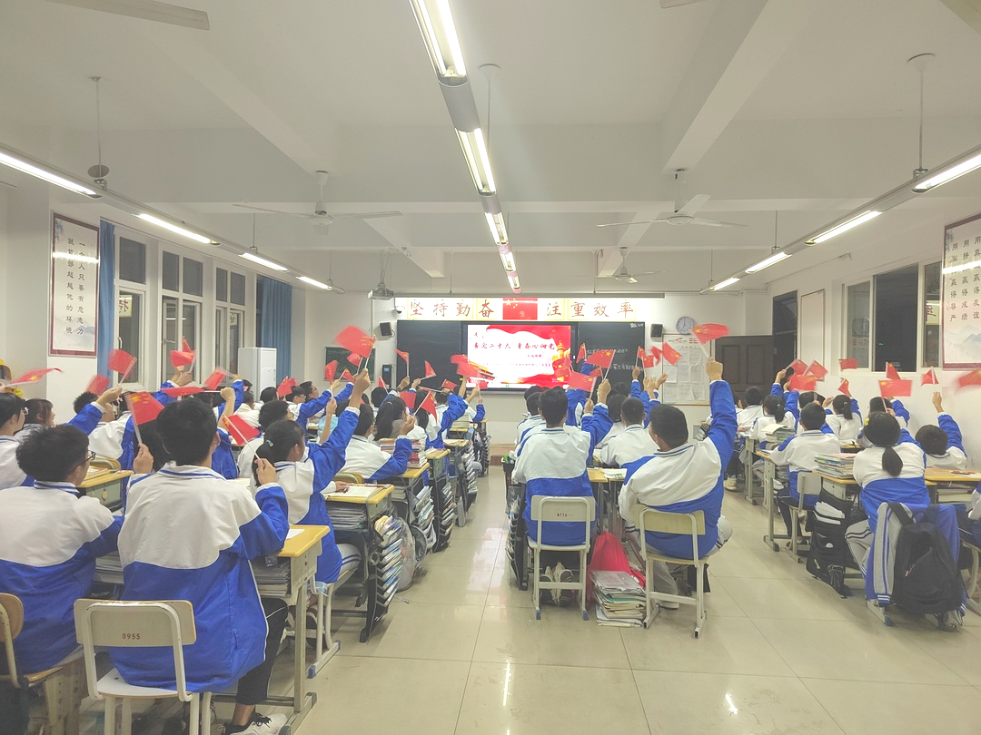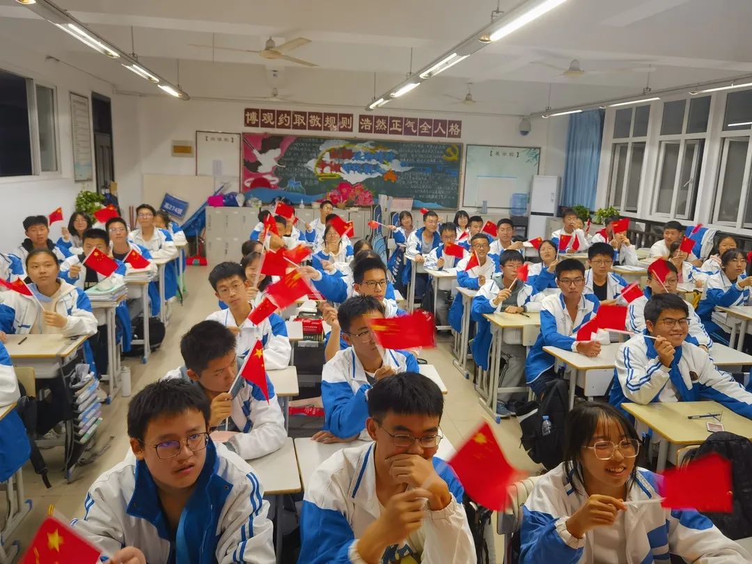 全校師生搖動鮮艷的國旗,唱響“我和我的祖國”,感黨恩、聽黨話、跟黨走,濃濃的愛國深情在校園上空久久回蕩!