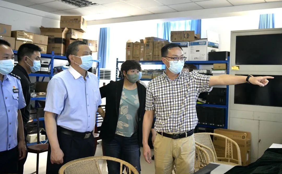 張鑫漢一行到達云天化中學(xué)東大門,對校園內(nèi)部保衛(wèi)力量建設(shè)、校園技防物防設(shè)施建設(shè)、校園內(nèi)部安全管理制度和組織發(fā)動校園周邊群防群治力量、涉校園矛盾糾紛排查整治等情況進行了詳細了解,先查看了學(xué)校安全防范建設(shè)以及高考考點安保的準備工作情況。隨后,張鑫漢一行查看了校園內(nèi)部監(jiān)控室運行情況。