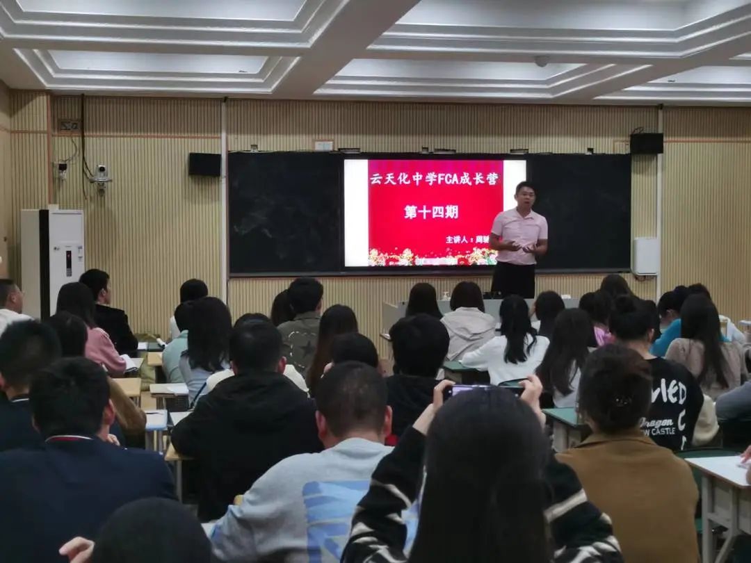 近日,“FCA成長營”第十四講,云天化中學(xué)德育處副主任周馳騁結(jié)合自身工作經(jīng)歷,給大家傳授經(jīng)驗——做一名有智慧的班主任。