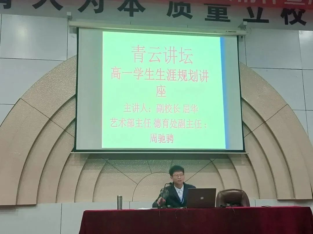 12月4日晚七點(diǎn),云天化中學(xué)第五期青云講壇——高一學(xué)生生涯規(guī)劃講座在文澤樓舉行。德育處章敏老師主持講壇,云天化中學(xué)副校長(zhǎng)屈華,藝術(shù)部主任、德育處副主任周馳程為主講,本次青云講壇主要向高一年級(jí)介紹了高考選科的方法,同時(shí)對(duì)于學(xué)生們的選科給予了一些中肯的建議,讓高一年級(jí)學(xué)生收益頗豐。