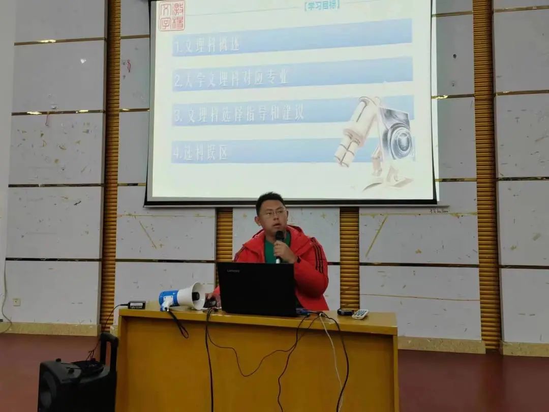 首先,周馳程老師就3+1+2的文理選科進(jìn)行了指導(dǎo)。向?qū)W生們介紹了何為文科理科,以及文理科的學(xué)科特點(diǎn),讓學(xué)生對(duì)于文理科有一個(gè)基本的了解。然后根據(jù)就業(yè)與選科的關(guān)系。對(duì)怎樣選擇文理科提出了自己的建議。