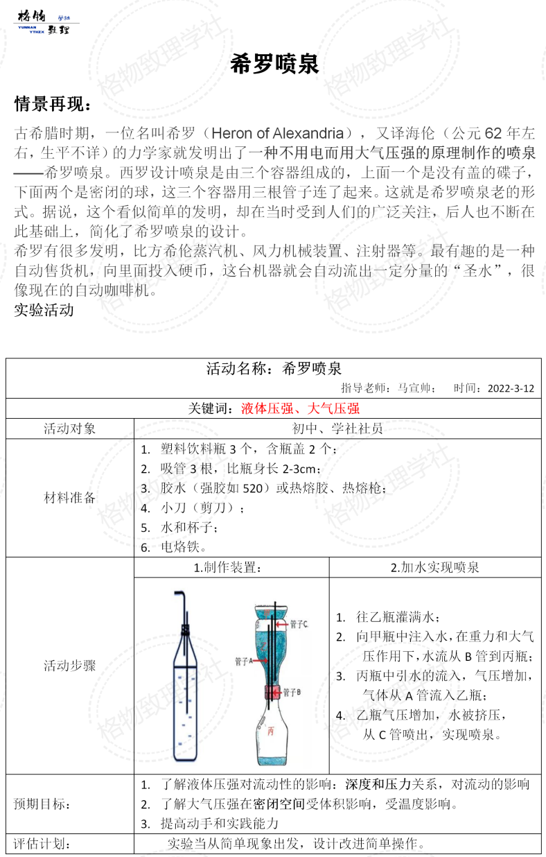 從虹吸原理到希羅噴泉:
