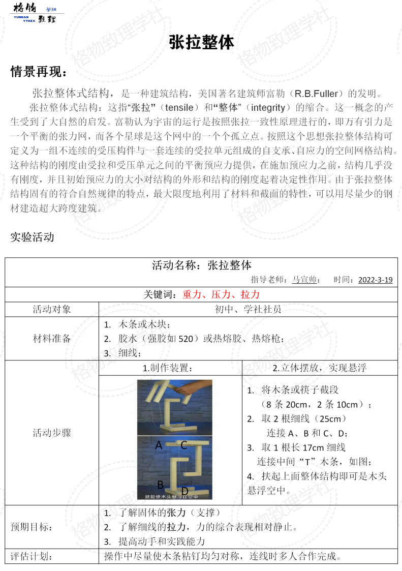 云天化中學(xué)初中部格物致理學(xué)社:立足中學(xué)物理教學(xué),瞻望學(xué)科奧秘和揭示理性思考思維,學(xué)社利用課后服務(wù)時(shí)間,開展物理趣味實(shí)驗(yàn),拓展課外實(shí)驗(yàn),激發(fā)學(xué)生思考和潛能,理論脫離不開實(shí)驗(yàn),實(shí)踐出真知,動(dòng)手實(shí)驗(yàn)學(xué)習(xí)到的使學(xué)生學(xué)習(xí)不咋愛那么枯燥、乏味,同時(shí)記憶更加深刻,在保證社團(tuán)活動(dòng)到的質(zhì)量下,指導(dǎo)老師悉心篩選,趣味性強(qiáng),初中物理知識(shí)范圍,且適當(dāng)拓展,深入探究和思考。