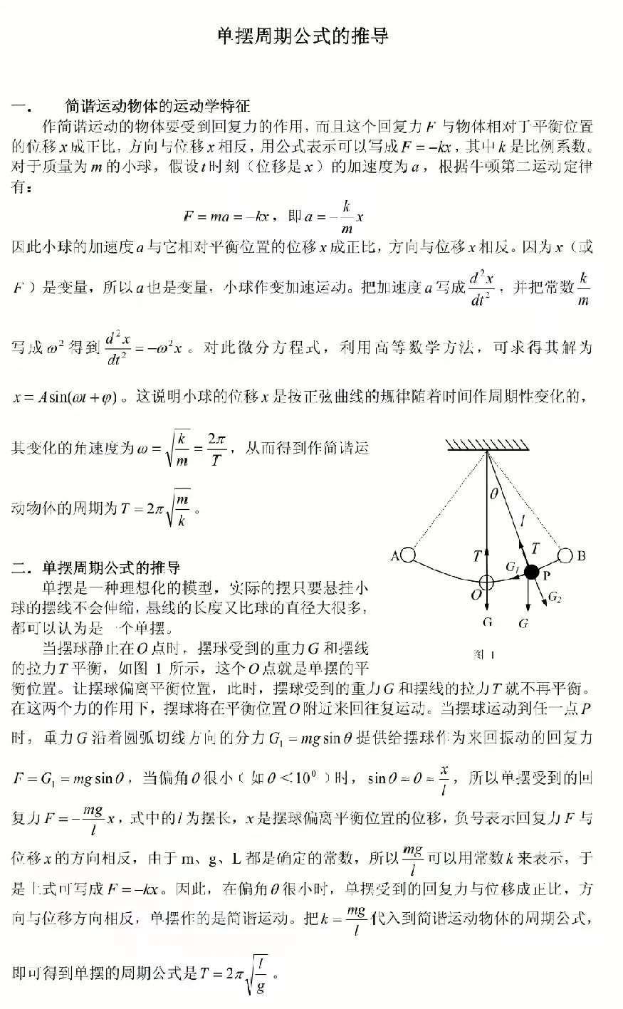 從簡(jiǎn)諧運(yùn)動(dòng)看單擺(擺動(dòng)小幅度可看成簡(jiǎn)諧運(yùn)動(dòng))