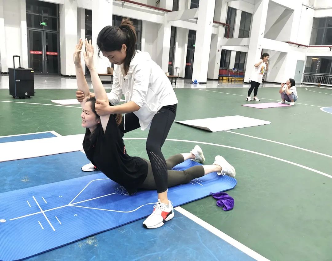 為響應(yīng)“每天鍛煉一小時,健康生活一輩子”的號召,豐富教師課余活動,初中部為教師開設(shè)了健身社團,主要以健身操,核心練習(xí),彈力帶練習(xí)為主,在老師們的堅持與練習(xí)下,最終完成藝術(shù)周表演!