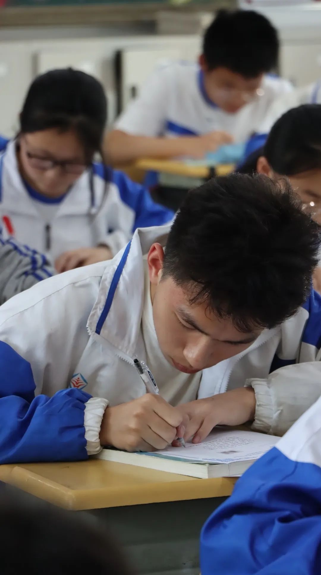 看,比賽現(xiàn)場(chǎng),端正的坐姿,整潔的書寫,認(rèn)真的臉龐,是少年最美好的模樣! 一筆一劃都凝聚了自己所有的努力與期待!