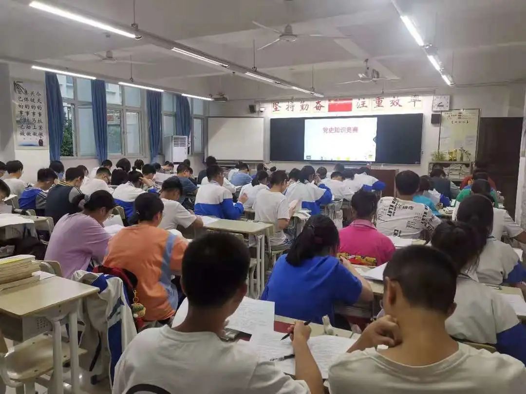 在知識競賽比賽中,高中各班級高度重視本次比賽,高中德育處和學(xué)校團(tuán)總支在賽前充分動員學(xué)生,各班班主任帶領(lǐng)學(xué)生精心籌劃,積極查閱相關(guān)黨史書籍、品鑒經(jīng)典,積極鼓勵學(xué)生拓寬黨史知識面,夯實(shí)黨史知識儲備基礎(chǔ),深刻領(lǐng)悟黨史精神內(nèi)核。經(jīng)過半個月的精心準(zhǔn)備,知識競賽如期開展。