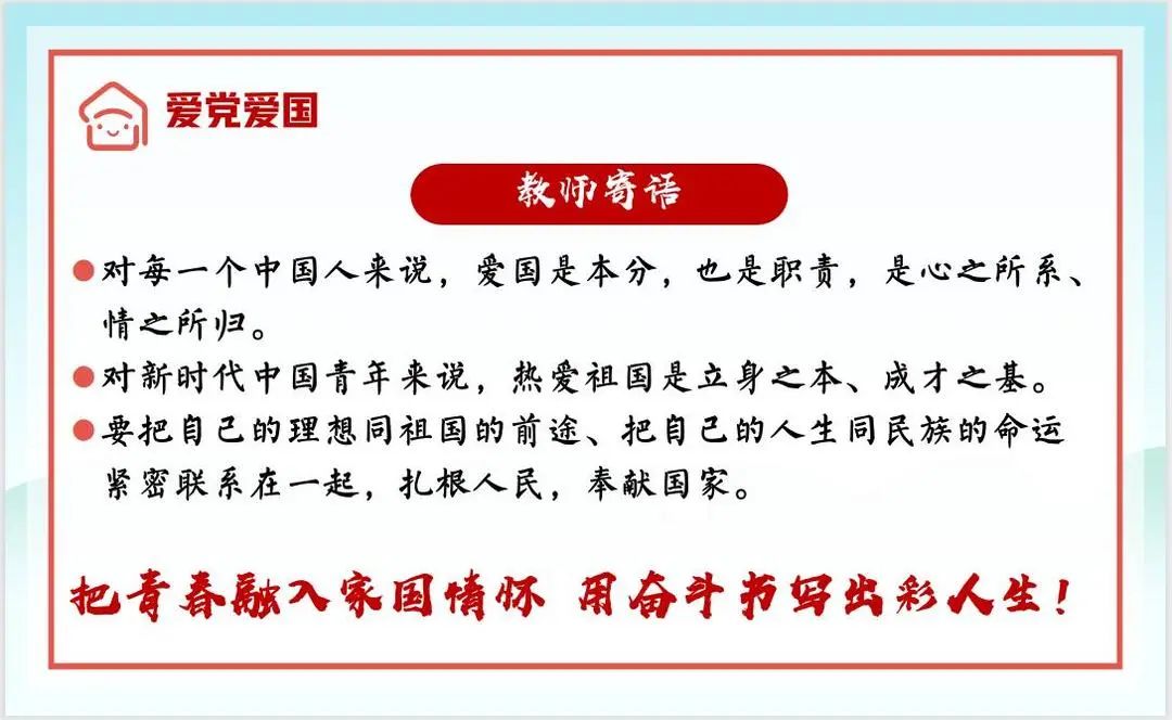 時(shí)代向前,吾輩向上,我們生在紅旗下,長(zhǎng)在春風(fēng)里。目光所至,皆為華夏,五星閃耀,皆為信仰,以吾輩之青春,護(hù)我盛世之中華!愿祖國(guó)母親山河錦繡,繁榮富強(qiáng)!
