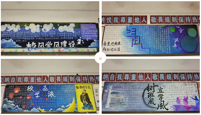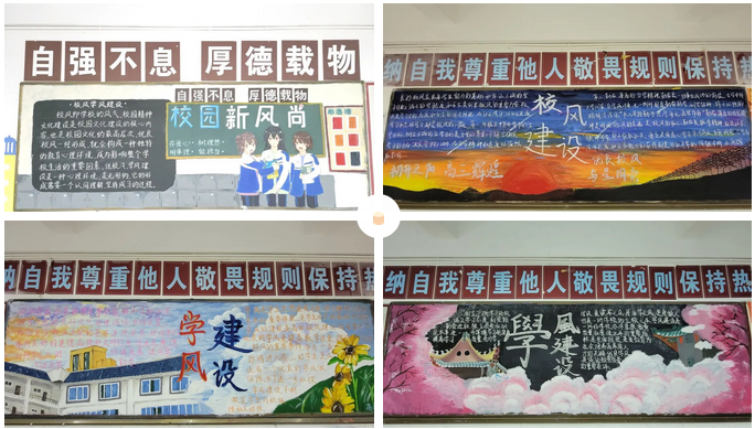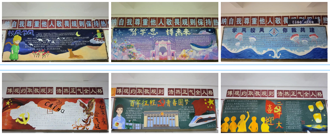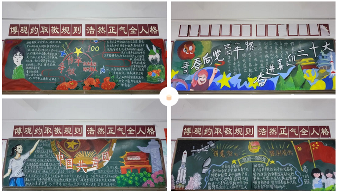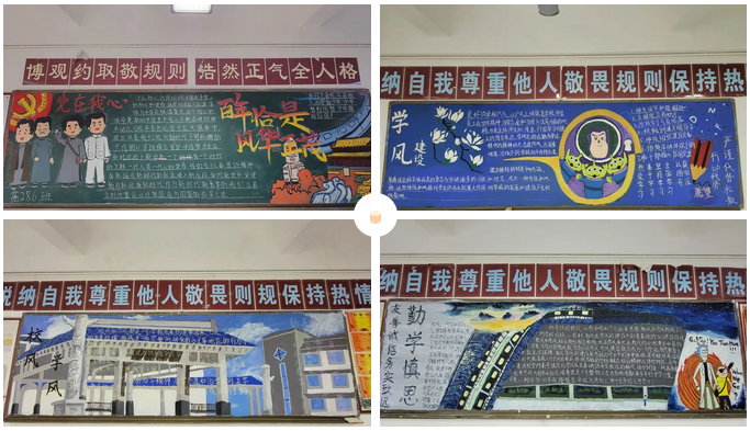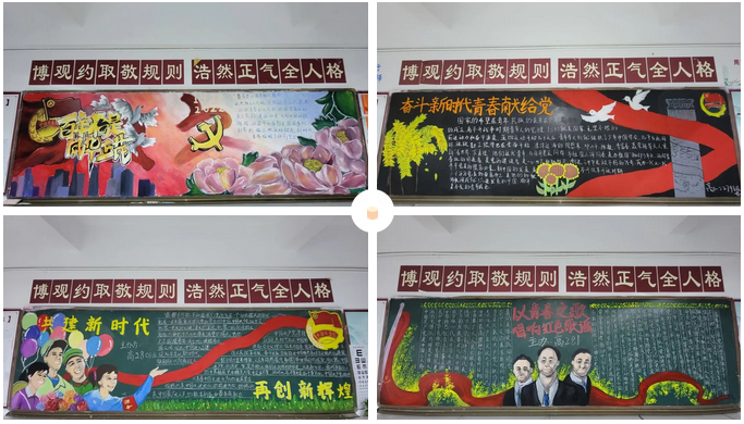 本次活動由學校團總支、高中德育處聯(lián)合組織開展,高一、高二共29個班級參與評比。在班主任的悉心指導以及同學們的精心準備下,各班黑板報主題突出鮮明、內(nèi)容充實、版面設計新穎、富有特色,板報的整體構圖開合有度,章法自然,插圖與每一處的文本有很好的契合,十分精美,處處體現(xiàn)了同學們的匠心,洋溢著青春與激情。?