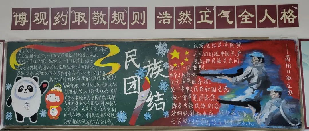 為進一步加強民族團結(jié)宣傳教育,讓每位學(xué)生都意識到民族團結(jié)的重要性。在提高全校師生的民族團結(jié)意識同時,讓學(xué)生能及時了解民族團結(jié)的內(nèi)涵,在全校形成民族團結(jié)一家親、民族團結(jié)心連心的濃厚氛圍,3月初在云天化中學(xué)團總支組織,各班主任帶領(lǐng)下,云天化中學(xué)高中部各班開展了"中華民族一家親"黑板報評比活動。