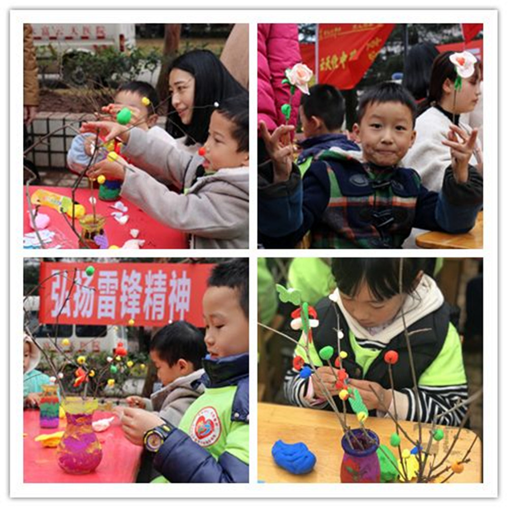 在老師的指導(dǎo)下,五顏六色的彩泥在小朋友靈巧的雙手中輕揉慢捻,變化出了各種花樣,孩子們親手將自己制作好的花朵粘貼在樹枝上,干枯的樹枝瞬間被賦予了神奇的魔力,變得鮮活了起來!插在漂亮的玻璃瓶中帶回家擺起來,真是又好看又實(shí)用!