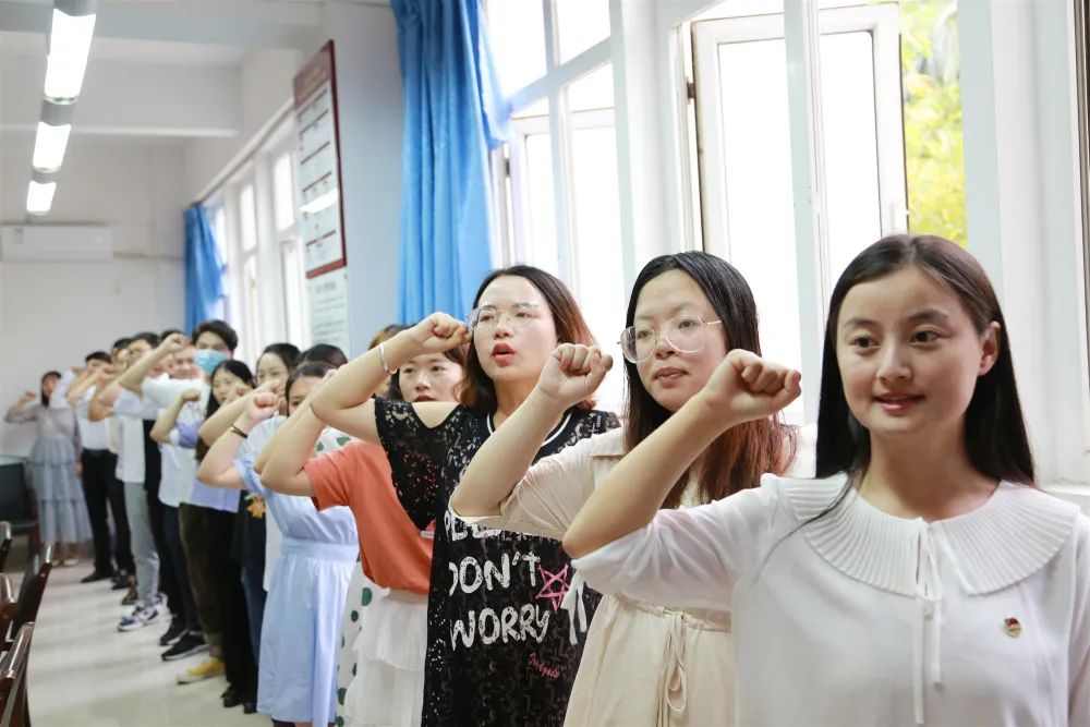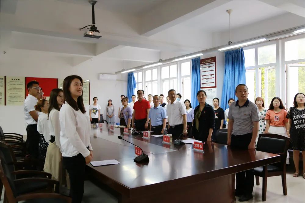 會議在莊嚴(yán)的國歌聲中拉開了帷幕,全體人員奏唱國歌,莊嚴(yán)肅穆,萬眾一心,歌頌祖國無上榮光,回聲蕩漾內(nèi)心澎湃的激情。隨后,全體參會人員高舉右手在云天化中學(xué)團(tuán)總支部書記周馳程的帶領(lǐng)下重溫了入團(tuán)誓詞。無論時光如何流轉(zhuǎn),我們從來不曾忘記我們作為一名團(tuán)員的使命。如今,我們多了一重身份——教師,肩上的擔(dān)子更重,但舉起的右手也更加有力。