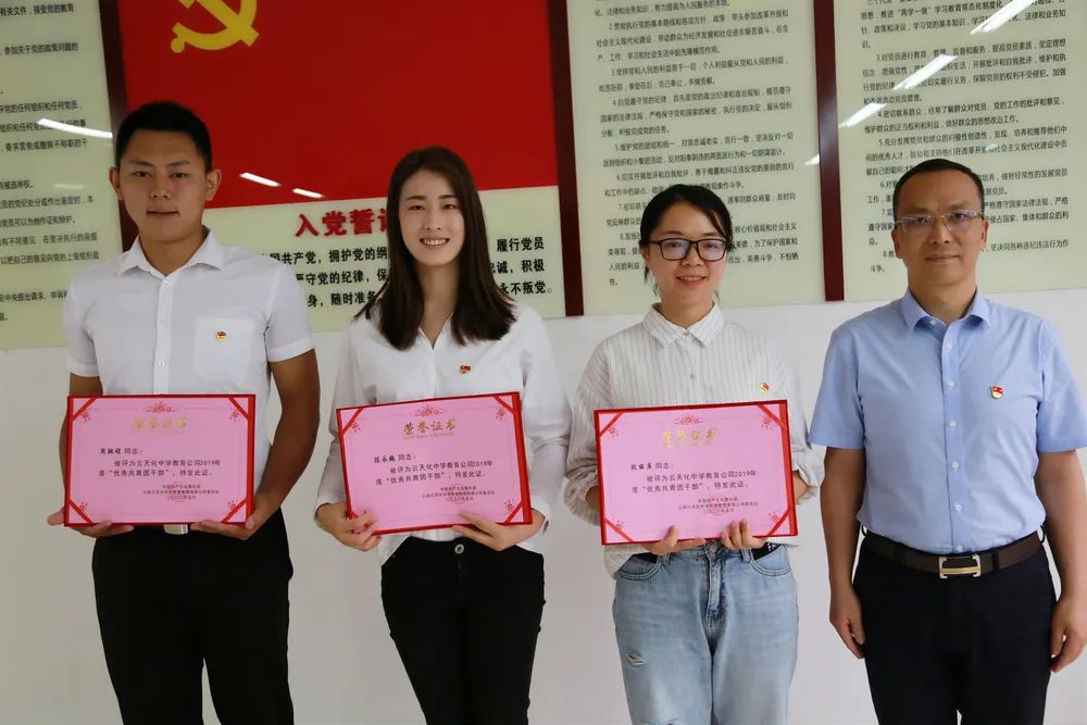 林勇宣讀表彰文件。蔡思潔、陳燕妮、鄧華東、豐曉陸、侯攀、黃小容、劉曉燕、龍幸川、王敏、肖良柱、周彥春11人獲教育公司2019年度“優(yōu)秀共青團(tuán)員”,陳永鵝、狄麗萍、周馳程3人獲教育公司2019年度“優(yōu)秀共青團(tuán)干部”。
