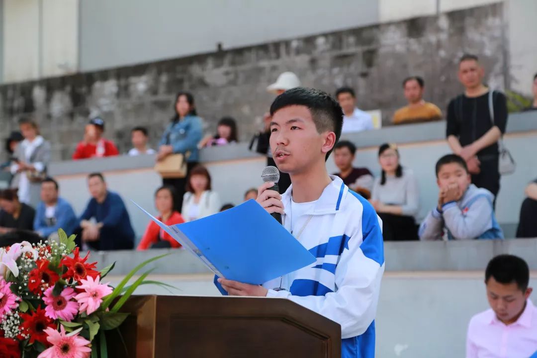 高三216班蔣哲同學(xué)代表全體高三學(xué)子發(fā)言,表達(dá)了對家長、老師精心教誨和學(xué)校悉心培育的感恩,表達(dá)了對未來無限的憧憬,并表示一定會擔(dān)當(dāng)家庭和社會之責(zé)任,以優(yōu)異的成績回報(bào)母校、回報(bào)社會。