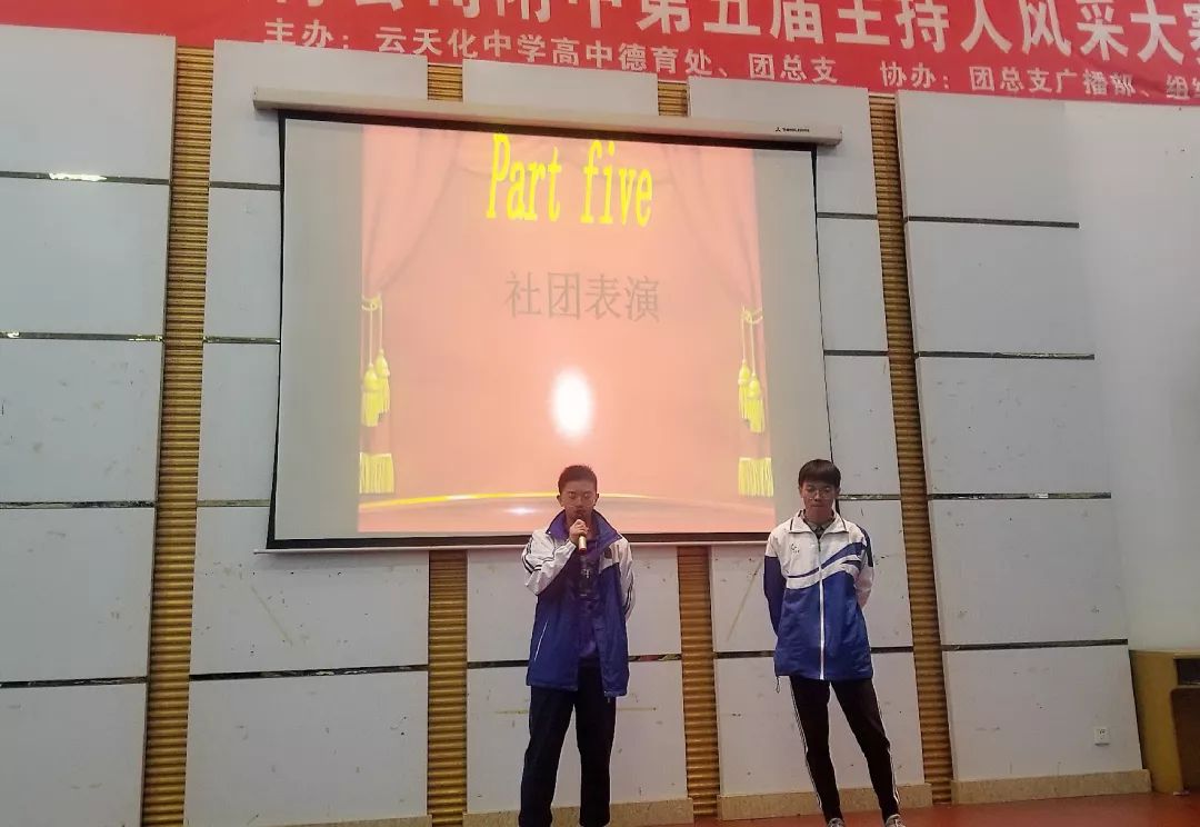 為傳播校園文化,豐富校園生活,展現(xiàn)學(xué)子風(fēng)采,10月25日下午17∶00,由云天化中學(xué)團(tuán)總支主辦,團(tuán)總支青年之聲廣播部和組織部共同承辦的“云天化中學(xué)、教育公司附中第五屆主持人風(fēng)采大賽”在云天化中學(xué)地字廳準(zhǔn)時(shí)開賽。團(tuán)總支書記周馳程、學(xué)生會(huì)負(fù)責(zé)人黃小容、心語工作室負(fù)責(zé)人龍幸川以及語文組越良清、權(quán)義林五位老師共同擔(dān)任了本次決賽評委,教育公司黨委工作部副部長江麗作為特邀嘉賓親臨現(xiàn)場指導(dǎo)。