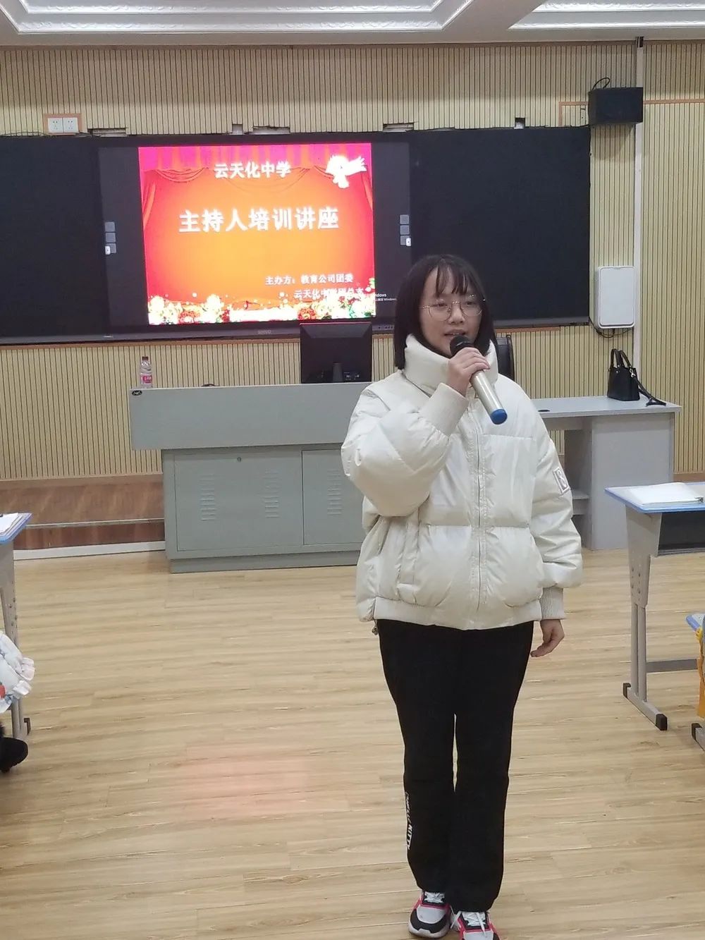 此次主持人培訓(xùn)講座不僅讓我校主持愛好者對主持有了新的理解和認(rèn)識,解答了同學(xué)們在主持及播音方面的疑惑。同時,也為下一步云天化中學(xué)主持人風(fēng)采大賽總決賽的高質(zhì)量開展提前進(jìn)行了預(yù)熱和系統(tǒng)訓(xùn)練。