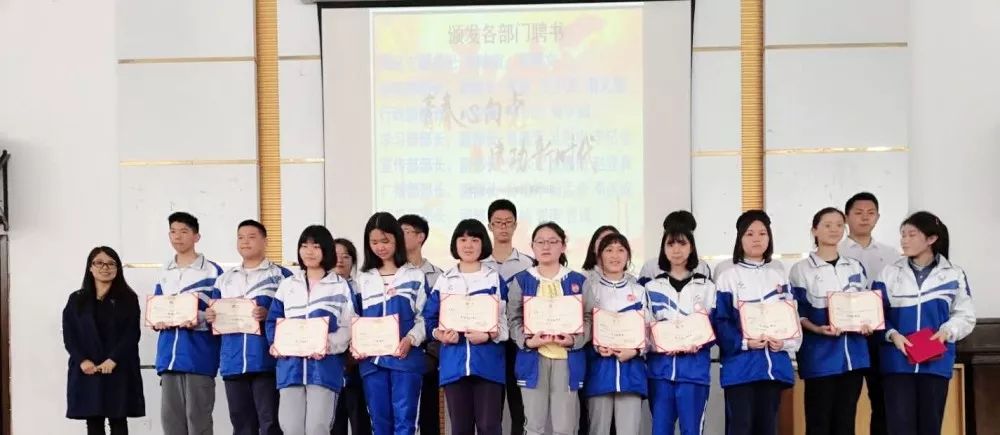 伴隨著喜悅的音樂(lè),隨后是簡(jiǎn)單隆重的頒獎(jiǎng)典禮。教育公司團(tuán)委書記林雪原,云天化中學(xué)團(tuán)總支書記周馳程,云天化中學(xué)初中德育處副主任、學(xué)生會(huì)負(fù)責(zé)人付雪蓮,心語(yǔ)工作室負(fù)責(zé)人龍幸川分別為云天化中學(xué)團(tuán)總支干部頒發(fā)聘書,為2018-2019年云天化中學(xué)團(tuán)總支優(yōu)秀團(tuán)干部、優(yōu)秀干事,班級(jí)優(yōu)秀團(tuán)支部書記進(jìn)行了表彰并頒獎(jiǎng)。也期待全體同學(xué)在今后的學(xué)習(xí)生活中保持熱情、演繹精彩。