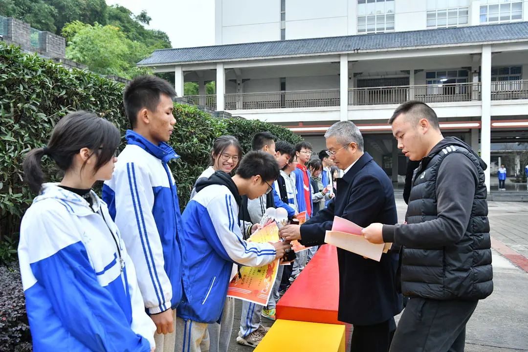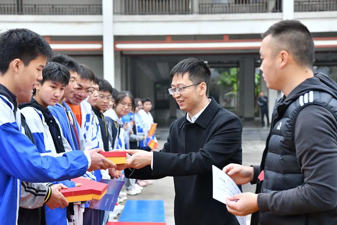 云天化中學執(zhí)行校長林勇,校長助理屈華、王玉出席頒獎儀式,分別為籃球聯(lián)賽前八名的班級及高中部優(yōu)秀班級頒發(fā)了獎狀與獎杯。