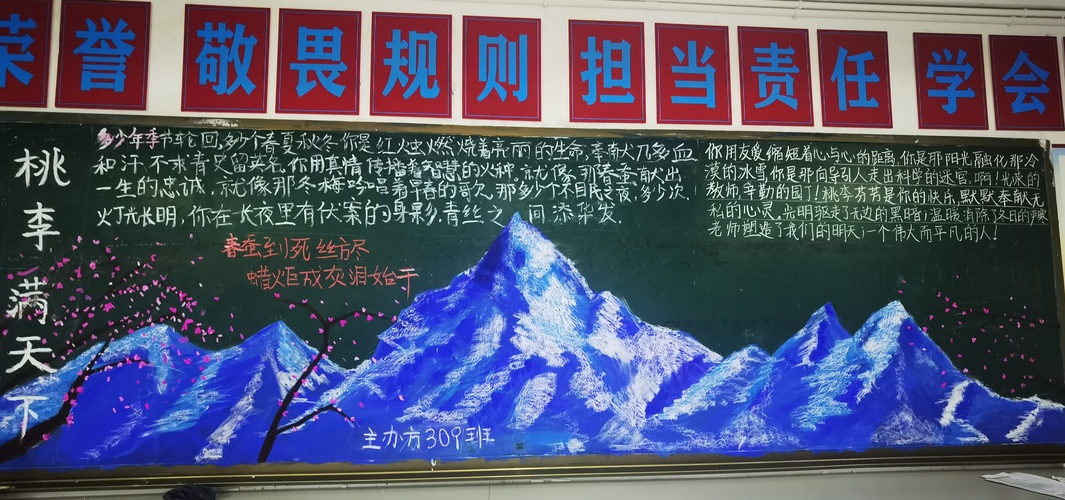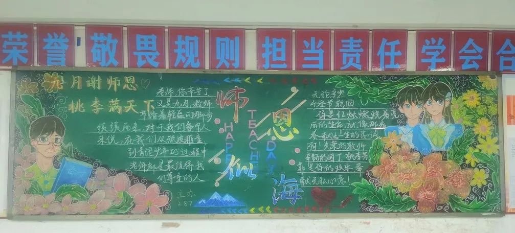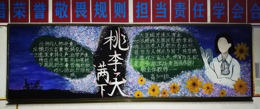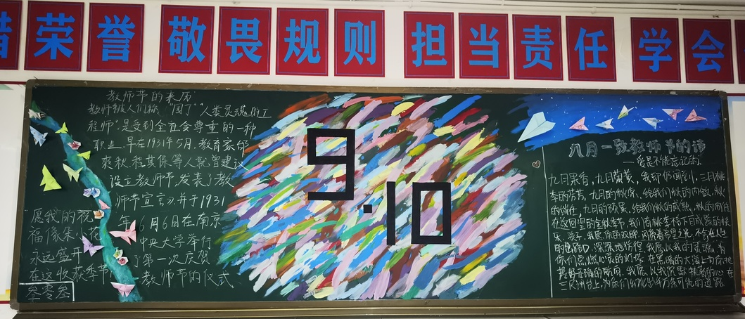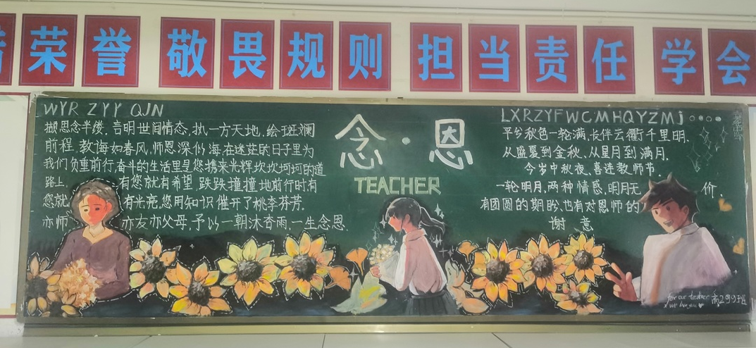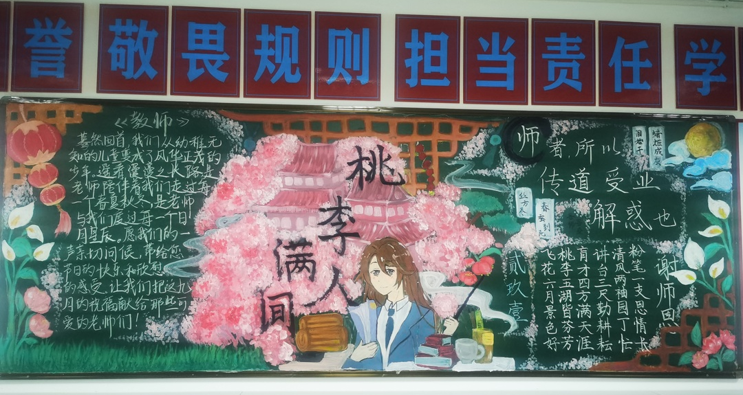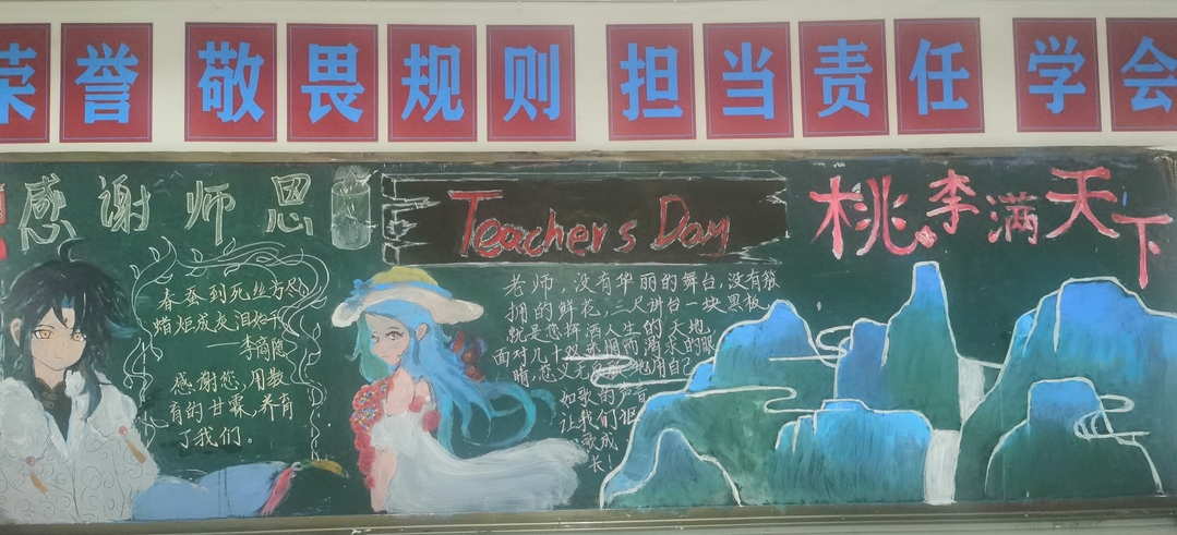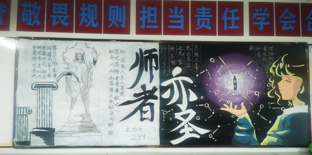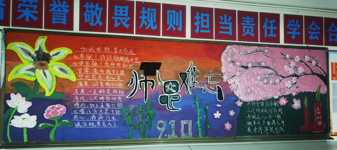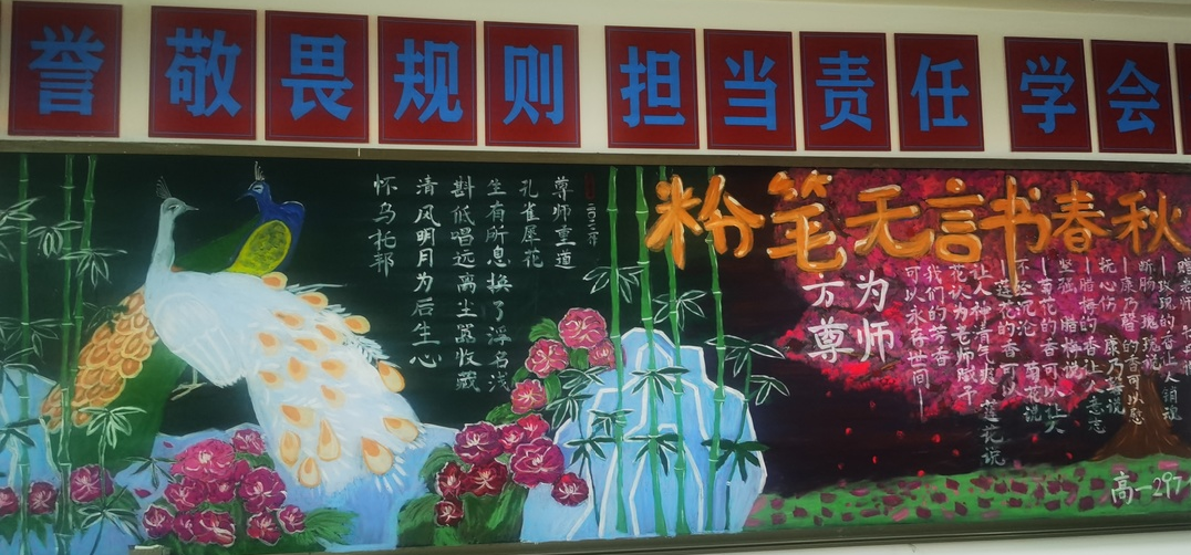 為慶祝第38個(gè)教師節(jié),促進(jìn)師生和諧交流,增進(jìn)師生感情和提高教師自豪感,增強(qiáng)學(xué)生的感恩之心,引領(lǐng)尊師重教的社會(huì)風(fēng)尚,云天化中學(xué)團(tuán)總支組織云天化中學(xué)、云天化實(shí)驗(yàn)高中高一年級(jí)以“難忘師恩”為主題,開展了教師節(jié)專題黑板報(bào)評(píng)比活動(dòng)。