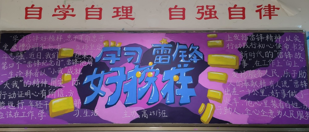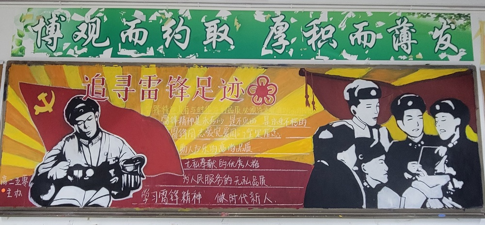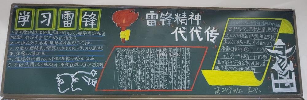 高二年級圍繞“雷鋒志愿行,共筑中國夢”,介紹雷鋒生平、宣傳雷鋒的感人事跡、傳承雷鋒精神,在實踐中深入體會雷鋒精神的含義,體驗雷鋒精神的魅力,增強機體凝聚力、加強學風建設,營造和諧校園。