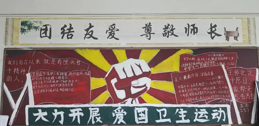 為貫徹落實(shí)習(xí)近平總書(shū)記關(guān)于深入開(kāi)展新時(shí)代愛(ài)國(guó)衛(wèi)生運(yùn)動(dòng)的重要講話(huà),進(jìn)一步提升和鞏固疫情防控人人有責(zé)、愛(ài)國(guó)衛(wèi)生人人參與,健康生活人人共享的良好勢(shì)頭,大力弘揚(yáng)愛(ài)國(guó)主義精神,培育和踐行社會(huì)主義核心價(jià)值觀(guān),提升云天化中學(xué)人文素養(yǎng)和愛(ài)國(guó)熱情,教育公司團(tuán)委及云天化中學(xué)高中德育處聯(lián)合指導(dǎo)云天化中學(xué)高一、高二各班團(tuán)團(tuán)支部,積極開(kāi)展了“新時(shí)代愛(ài)國(guó)衛(wèi)生運(yùn)動(dòng)”黑板報(bào)比賽。