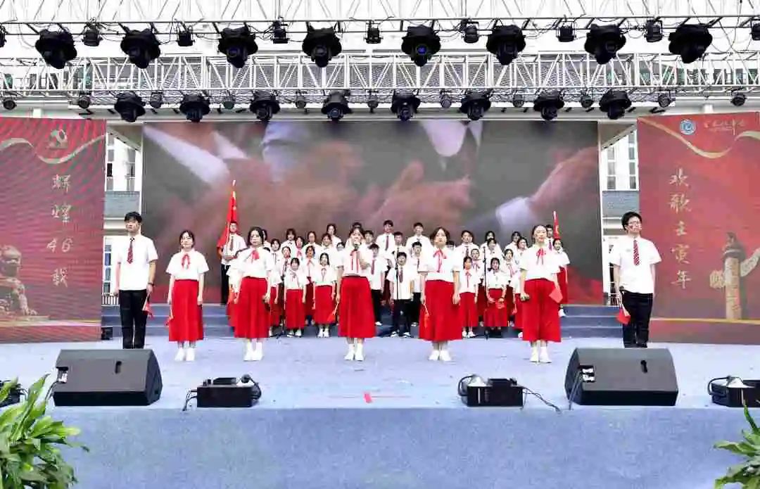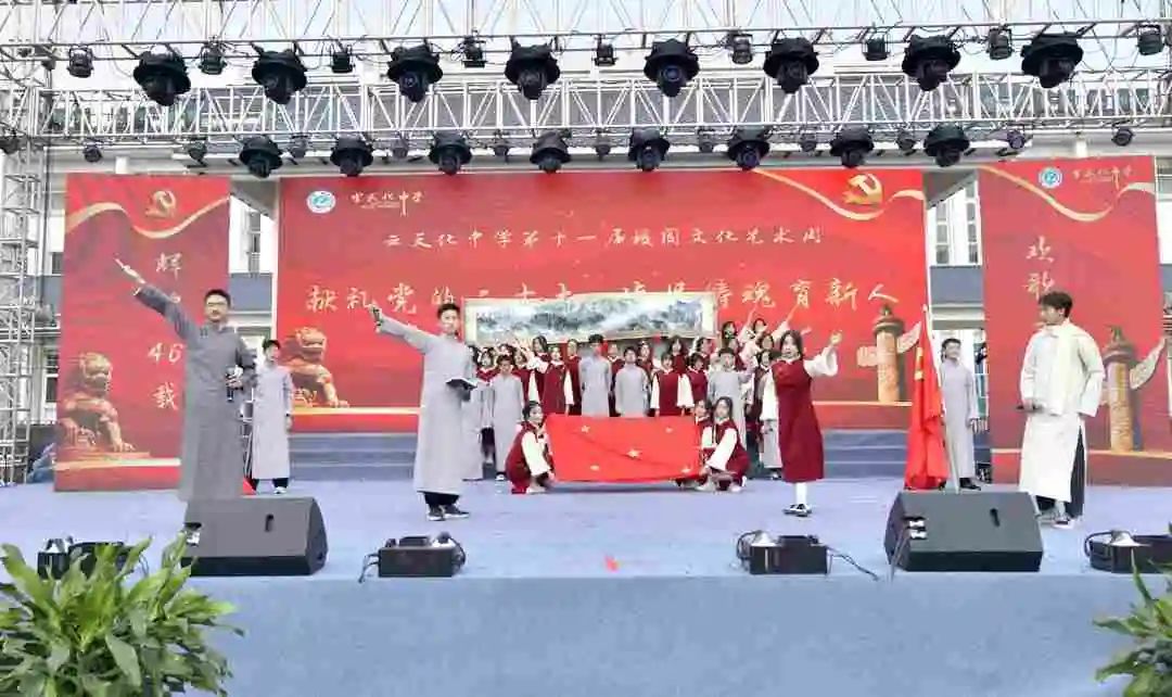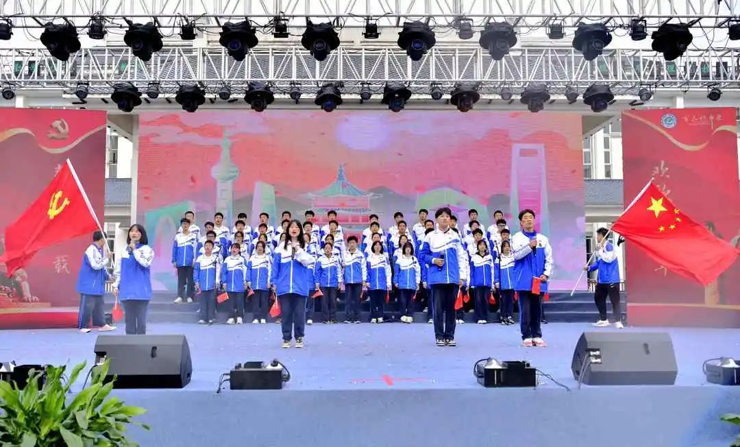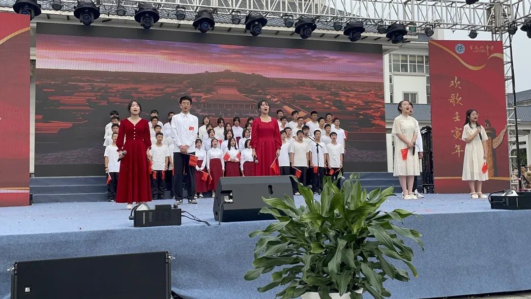 今天,我們?cè)铺旎袑W(xué)高二年級(jí)的同學(xué)們用他們鏗鏘有力、熱血沸騰的聲音以及飽滿的熱情表達(dá)了對(duì)祖國(guó)的熱愛(ài)與贊美, 祝愿我們的祖國(guó)繁榮,富強(qiáng)!