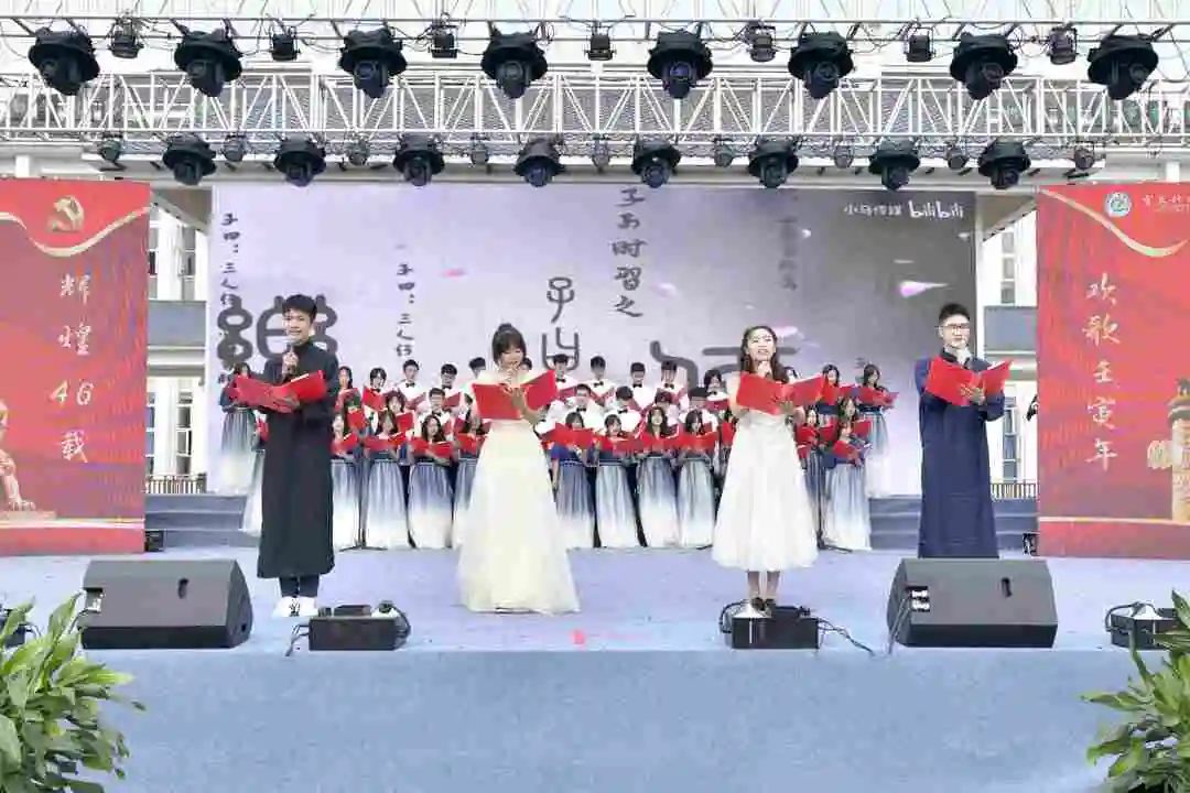 286班朗誦篇章《風(fēng)華》,用聲音帶領(lǐng)觀眾們穿越了崢嶸百年:從嘉興南湖上的紅船,到南昌城的槍響;從井岡山的霞光,到臺(tái)兒莊的山坳。中國(guó)共產(chǎn)黨百年的崢嶸歲月中,鮮紅的歷史從不褪色!