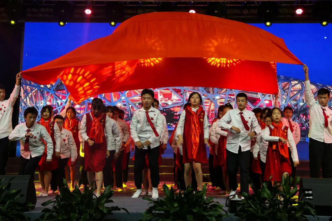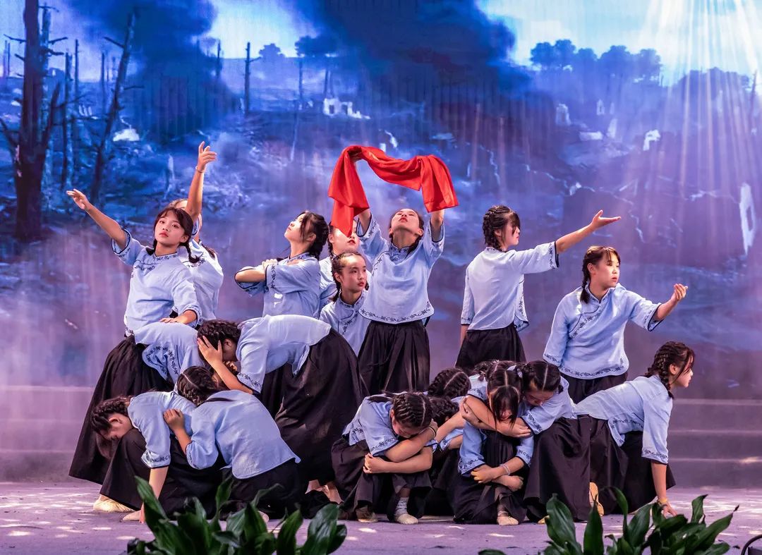紅旗迎風飄揚,兒女扶弱抑強!家鄉(xiāng)的月亮照亮我的來路,不忘初心;沖鋒的號角引領(lǐng)我的前途,激昂奮進!