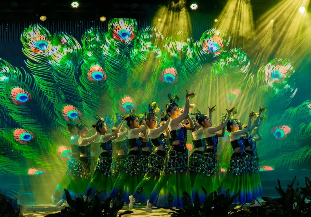 音樂響起,顫動的緬桂花映襯著姑娘們青春俏麗的臉龐,柔美的身段,扭動的腰肢,傣家姑娘如緬桂花般嬌媚芬芳。