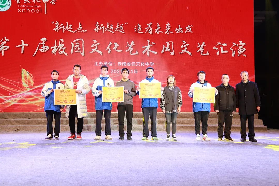 藝術(shù)周文藝總匯演中還穿插了隆重的頒獎儀式。水富市委常委、市委教育工委書記、教體局局長楊瑞余,教育公司董事、總經(jīng)理、云天化中學(xué)董事方明頒發(fā)“云天化中學(xué)拔尖創(chuàng)新人才獎”;教育公司董事、副總經(jīng)理、云天化中學(xué)校長林勇為“云天化中學(xué)第42屆運動會團體總分第一名”頒獎;教育公司副總經(jīng)理、云天化中學(xué)副校長孟雄為“第十屆藝術(shù)周班級節(jié)目一等獎”頒獎;云天化中學(xué)義教黨支部書記、副校長賀善兵為“第十屆藝術(shù)周黑板報比賽一等獎”頒獎。