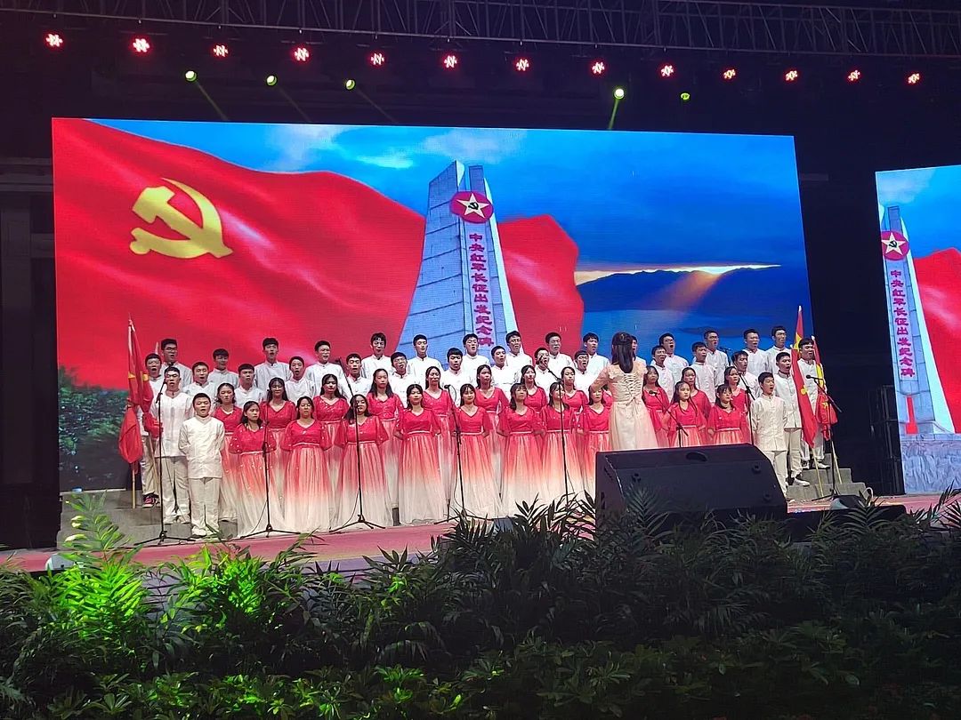 旋律深情激昂,歌詞激揚,讓人熱血沸騰。一首《紅旗飄飄》將紅軍長征的宏偉背景呈現(xiàn)在眼前,他們將精彩的服裝、嘹亮的歌聲,絢麗的背景完美的融合在一起,為大家呈現(xiàn)了一場精彩的演出!