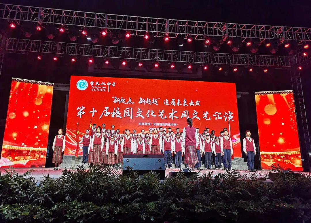 11月17日晚,隨著音樂的響起,云天化中學(xué)第十屆校園文化藝術(shù)周高一年級合唱專場演出在理想廣場盛大開幕。高一年級學(xué)子以歌唱祖國、歌唱新時代青年為主題一展嘹亮歌喉。