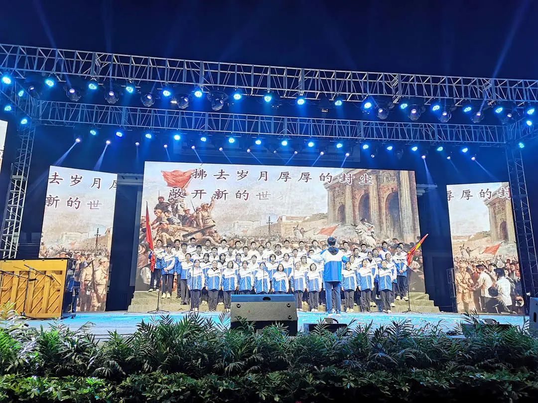 這晚,高一學(xué)子用青春唱響時代主旋律,歌聲嘹亮,表達對黨和祖國拳拳赤子心!