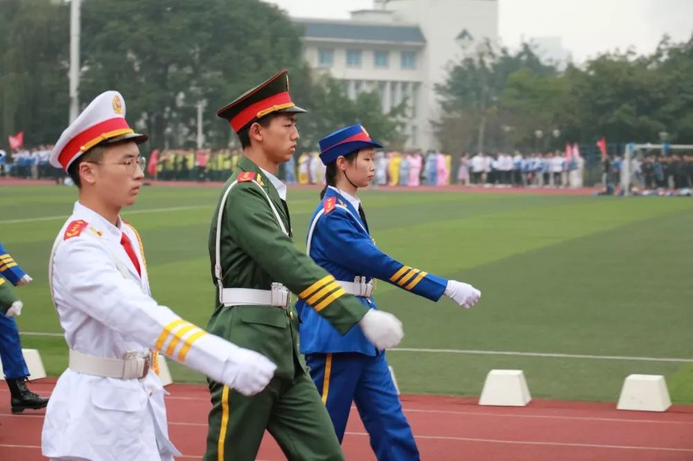 早上8∶00,明快的運動員進(jìn)行曲響徹校園,三色軍裝護(hù)衛(wèi)著鮮紅的國旗,邁著鏗鏘的步伐,彰顯著云天學(xué)子的錚錚鐵骨,空氣中也彌漫著濃厚的愛國熱情。彩旗隊高舉著彩旗入場,詮釋了開展運動會的意義,弘揚了奧林匹克精神。