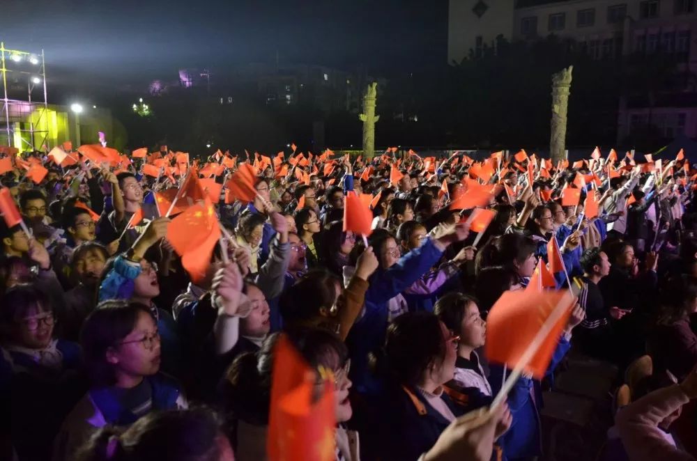 11月14日晚7點,云天化中學(xué)理想廣場燈光璀璨,全體師生揮舞著紅旗,齊唱“我和我的祖國”,第九屆文化藝術(shù)周高中專場匯演終于在千呼萬喚中始了出來。