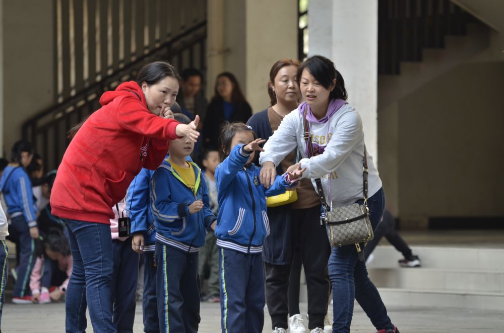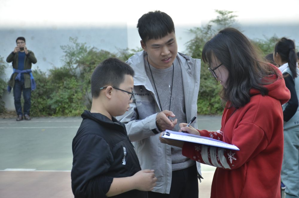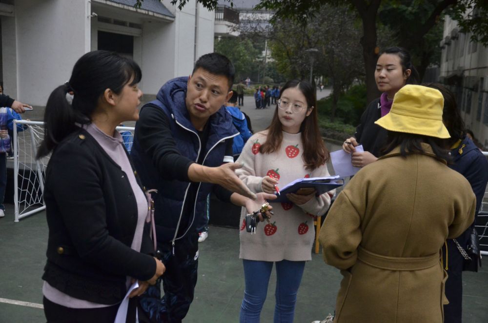 緊張的賽前準(zhǔn)備中,各班班主任及家長代表用心地對學(xué)生進(jìn)行比賽動作示范。