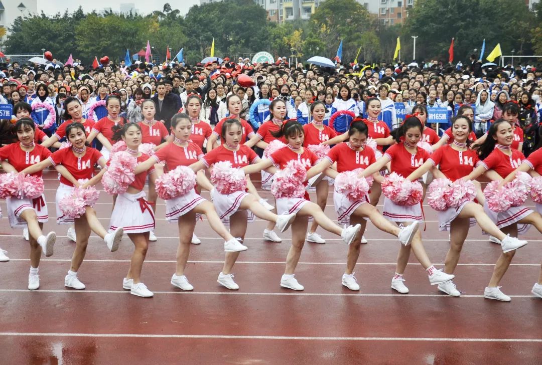 啦啦操的姑娘們穿著短裙,在冬日的寒風中盡展云中風采;全場氣氛在綿綿的秋雨中攀升至最高點!
