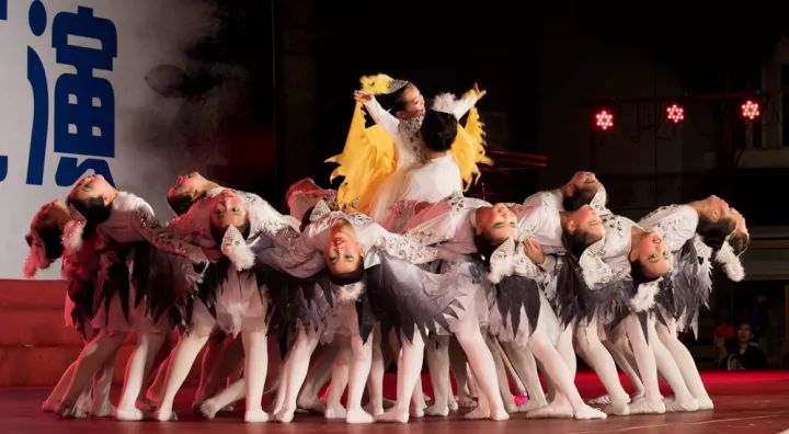 晚會在樂壇經(jīng)典名曲《海闊天空》中徐徐拉開帷幕。 絢麗的彩霞,嬌艷的花朵,此刻,在本屆藝術(shù)周《魅力校園》主題歌舞中悄然綻放。 激情、時尚的啦啦操表演,活力四射,舞動青春。 幼兒園小朋友帶來《十一只貓做苦工》情景劇,在詼諧幽默中,引人深思,更平添幾分生活情趣。 五年級二班同學(xué)帶來的原創(chuàng)課本劇《狐假虎威新編》,構(gòu)思巧妙,情節(jié)疊宕,自然清新,加上動感的節(jié)奏,痛快淋漓的舞步,不時贏得陣陣喝彩。 簡單的道具,快樂的《杯子舞》,瞬間讓人感受到人世間最簡單、本真的歡樂。街舞社一亮相,滿場歡呼。 《shake the world》動感音樂響起,舞臺上的每一寸空間都隨之搖擺,充斥著如火般燃燒的熱情。