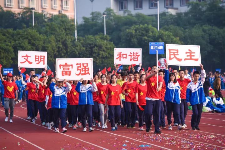 運(yùn)動(dòng)會(huì)分單項(xiàng)和集體項(xiàng)目?jī)纱箢?。單?xiàng),以田徑比賽為主。集體項(xiàng)目,以大眾化、娛樂性、趣味性為主。各參賽隊(duì)以班級(jí)單位,以年級(jí)橫向比拼排名。學(xué)生參與面甚廣,除高三年級(jí)學(xué)生外,全校從小學(xué)一年級(jí),到高二年級(jí),幾乎全員參與。