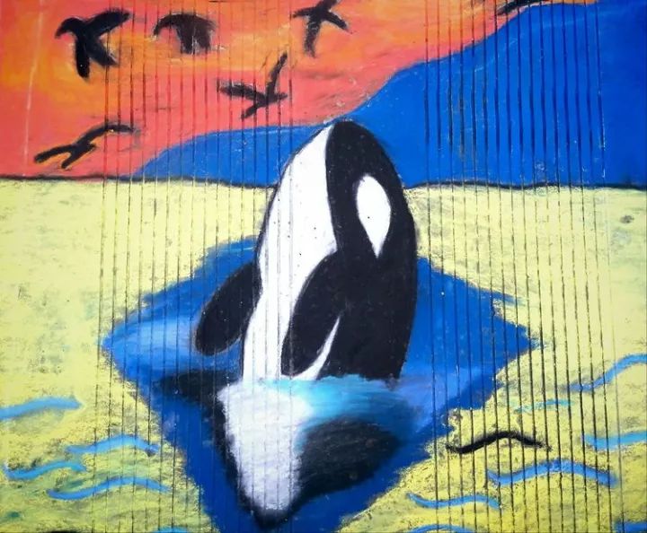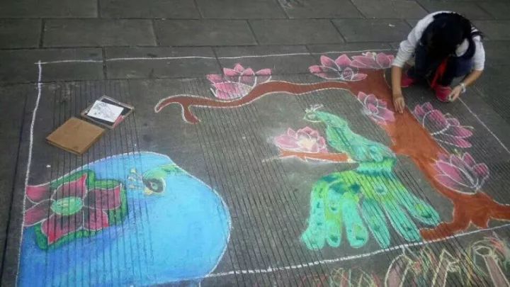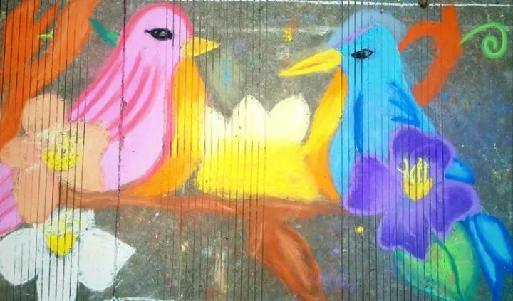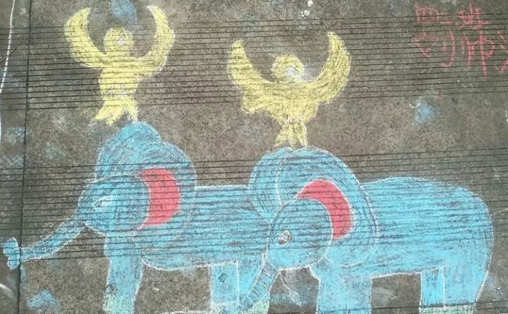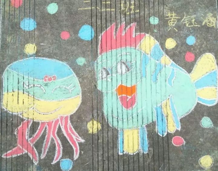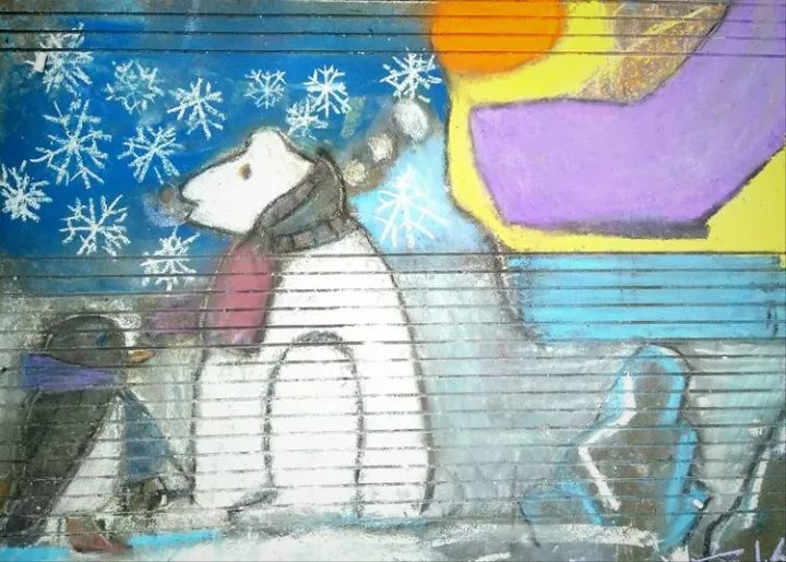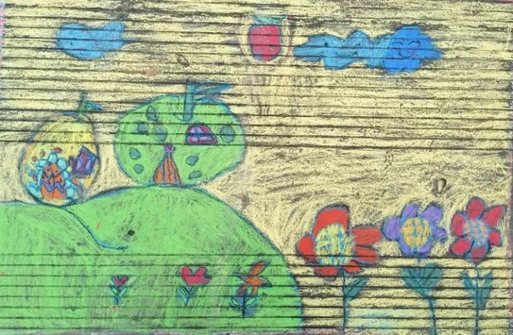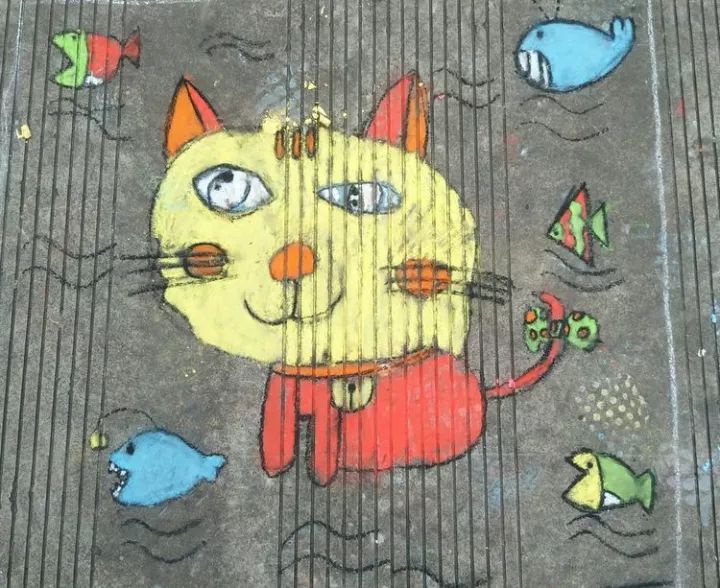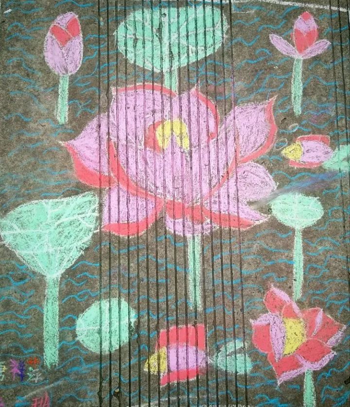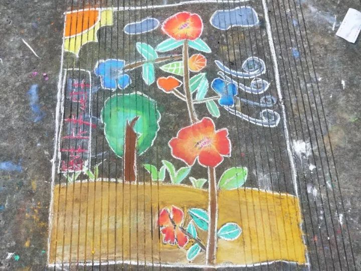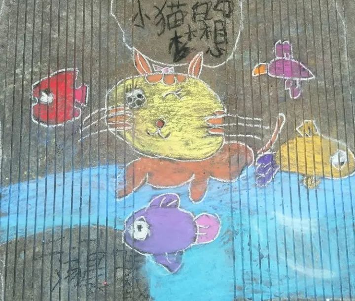 下面是部分小學(xué)生的粉筆畫作品: