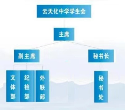 云天化中學(xué)高中部學(xué)生會(huì)是一個(gè)在德育校長(zhǎng)、德育處領(lǐng)導(dǎo)下,實(shí)現(xiàn)自我服務(wù)、自我管理、自我教育、自我監(jiān)督的學(xué)生自主組織,下設(shè)四個(gè)部門——秘書處、紀(jì)檢部、文體部、外聯(lián)部。以“全心全意為同學(xué)服務(wù)”為宗旨,堅(jiān)持“熱情、服務(wù)、合作、創(chuàng)新”的工作理念,以建設(shè)“凝聚力高,戰(zhàn)斗力強(qiáng)”的服務(wù)型學(xué)生會(huì)為目標(biāo)。獨(dú)立自主、富有特色地開展體育競(jìng)技、文藝演出、科研創(chuàng)新等多方面的活動(dòng),推動(dòng)校園文化建設(shè)、學(xué)風(fēng)建設(shè),積極響應(yīng)學(xué)校的各項(xiàng)號(hào)召,弘揚(yáng)云中精神,大力配合學(xué)校開展好各項(xiàng)工作,更好地建設(shè)美麗云中。