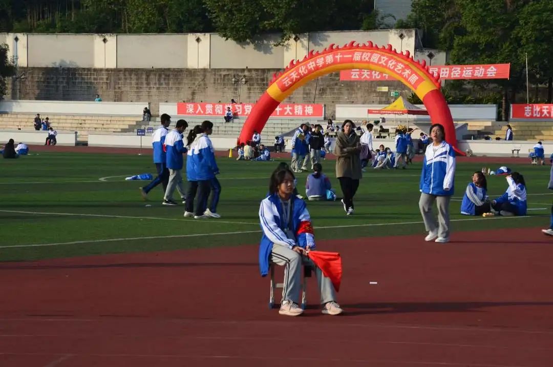 可愛的志愿者們抵著微涼,堅(jiān)守在綠茵跑道邊,體貼幫參賽選手保管衣物,為田徑項(xiàng)目護(hù)航。