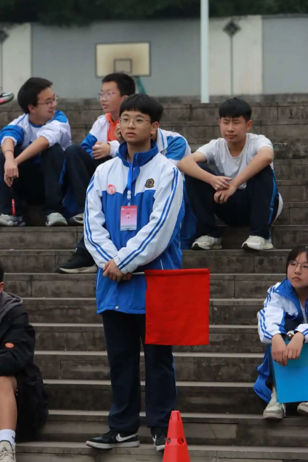 團(tuán)總支青年之聲廣播部的同學(xué)們以昂揚(yáng)向上的聲調(diào)傳遞出各個(gè)班級(jí)的助威吶喊。