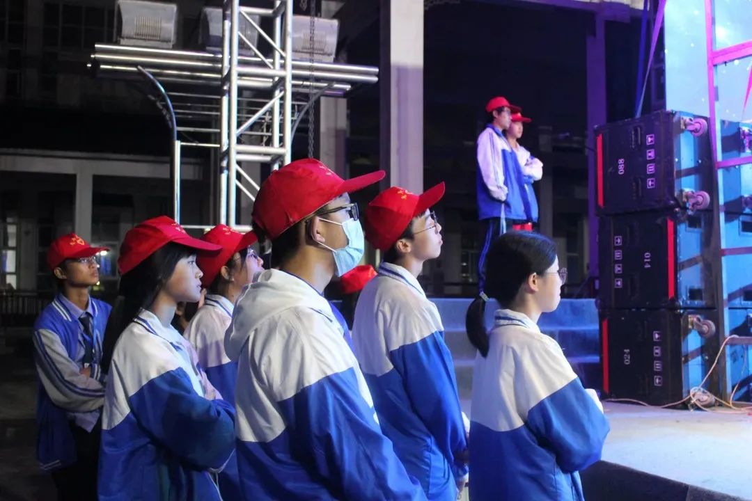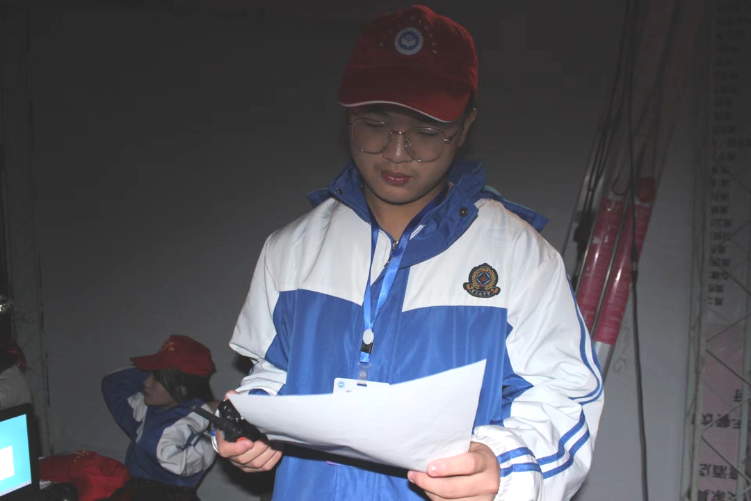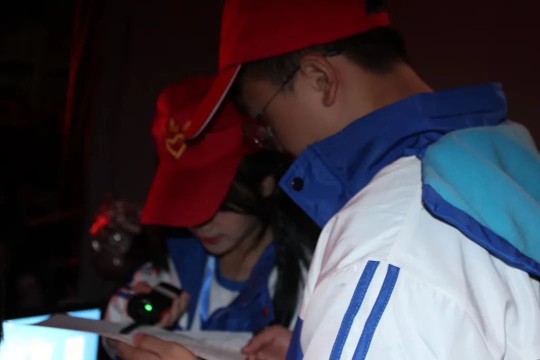 燈光絢爛,夜未央。舞臺(tái)幕后的小紅帽們?cè)缫炎龊昧顺渥銣?zhǔn)備,放音樂視頻、催場(chǎng)安排、擺放道具有條不紊,維護(hù)會(huì)場(chǎng)秩序,保證晚會(huì)順利進(jìn)行。