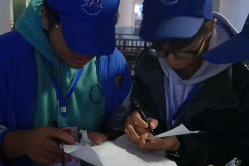 “小袖標(biāo)”“小徽章”們一絲不茍核對(duì)參賽選手的信息、組織選手進(jìn)入比賽場(chǎng)地。